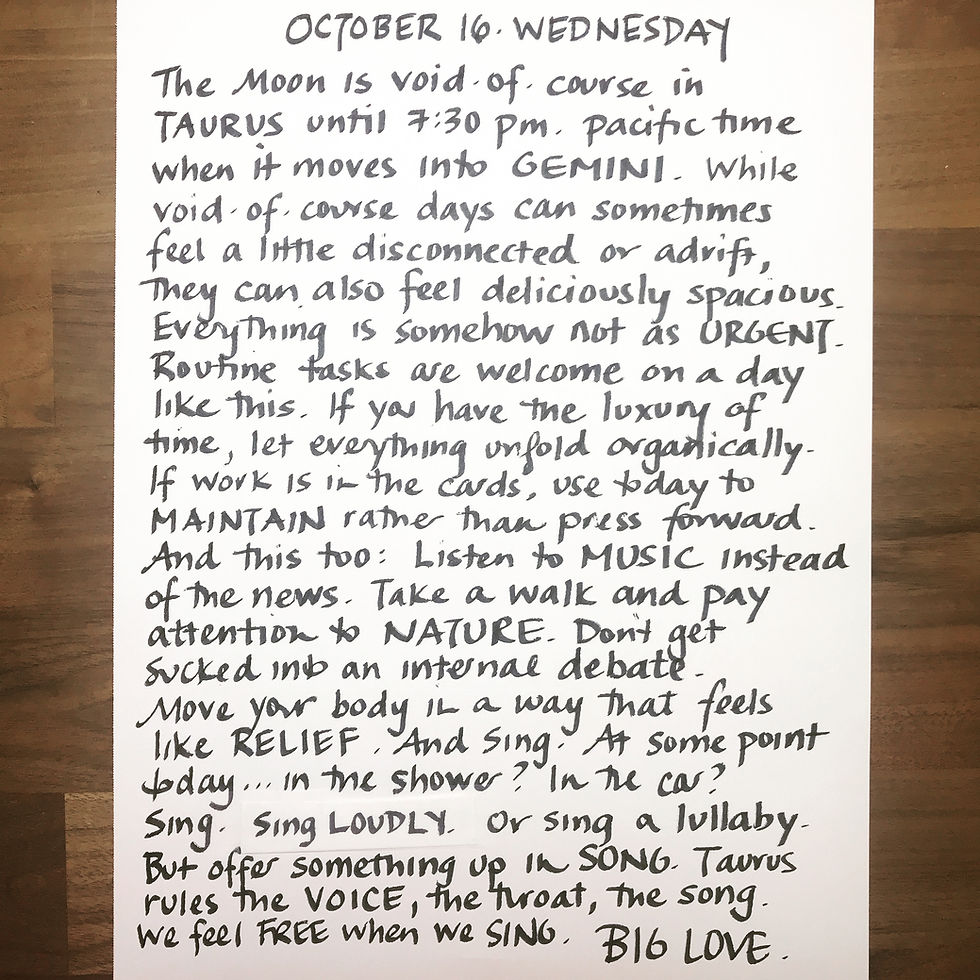 Moon Notes - October 16, Moon in Taurus, then Gemini